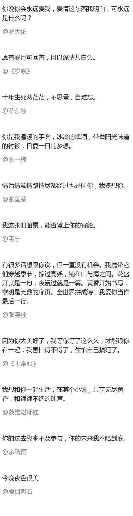 这一百种“我爱你”的表达方式只想说给你听,看着这些文字的时候,我的脑海里全部都是你的样子。