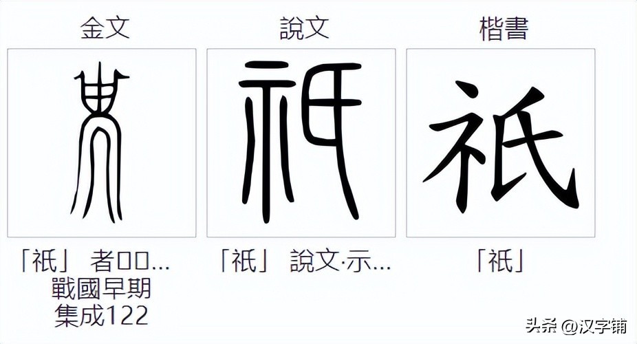 祇,初见于金文时代,后来又在《说文》中发现,“祇”字简体版的楷书从秦朝小篆演变而来。“祇”的字源演变图如下: