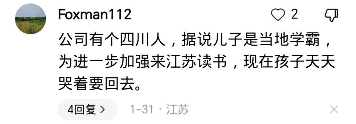 看了这些评论,我看了一眼正在上网课的女儿:闺女啊,别怪爸妈把你生在江苏我们想去外地也没条件啊