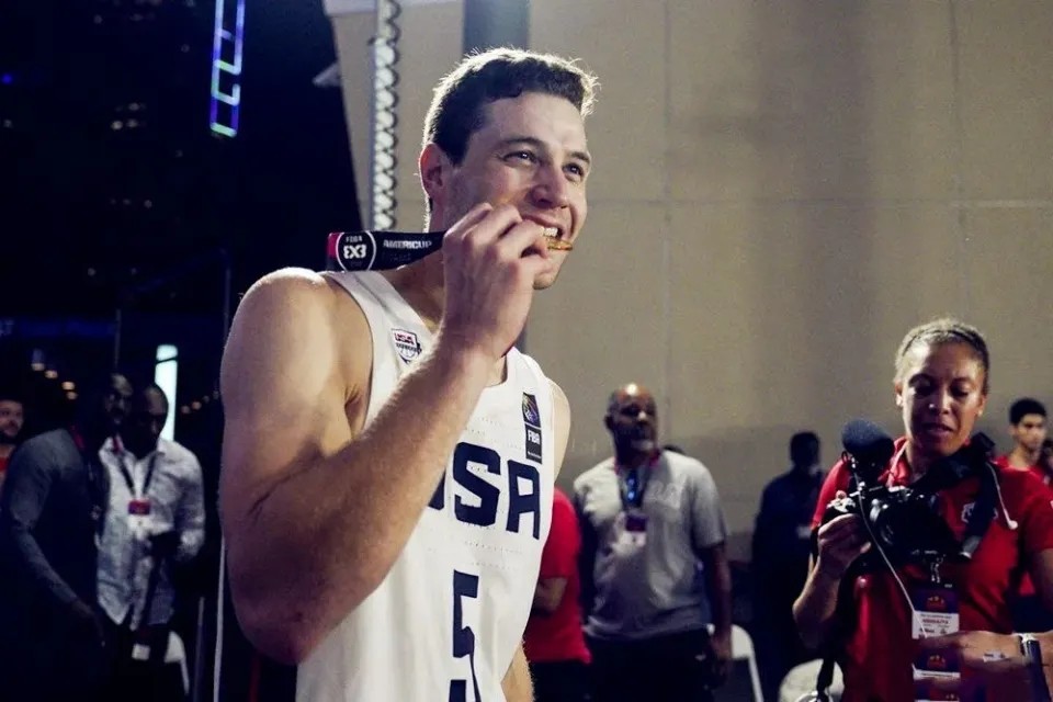 但吉默的出现改变了美国三人篮球的地位,他的投篮依然犀利,就像一台精准运行的投篮机器这么多年他早已把动作变成了机械记忆,2022年10月他和队友们第一次亮相三篮美洲杯就拿下金牌。