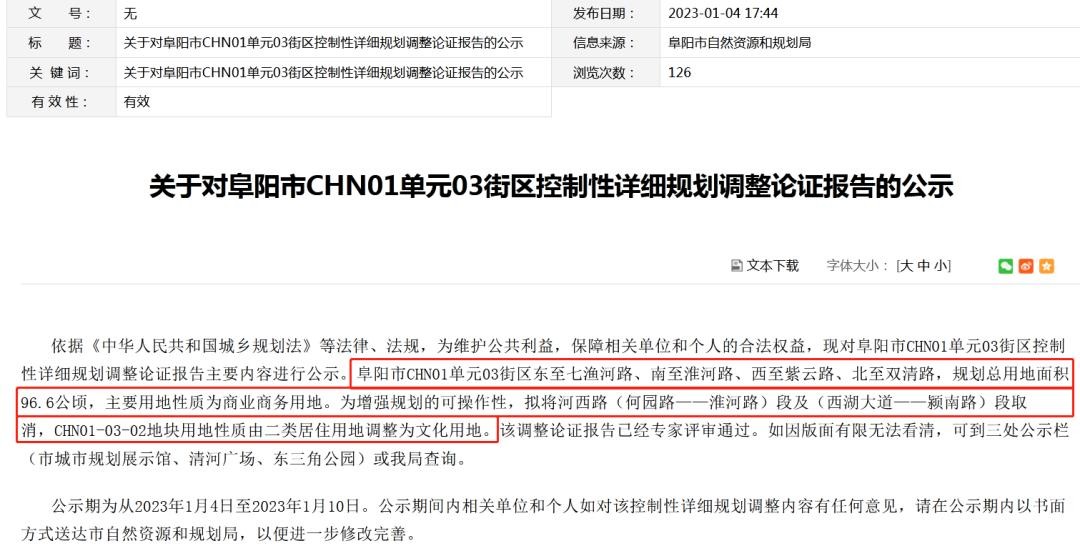 为增强规划的可操作性,拟将河西路(何园路——淮河路)段及(西湖大道——颍南路)段取消,CHN01-03-02地块用地性质由二类居住用地调整为文化用地。