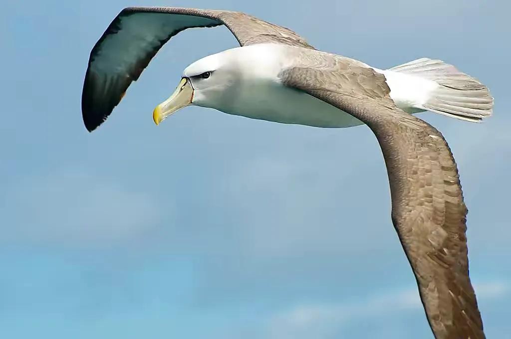 成年的信天翁一年飞过的距离可绕地球三圈,它们有90%的时间都是在海上漂泊的,而且总是在海浪最凶猛的地方捕食。