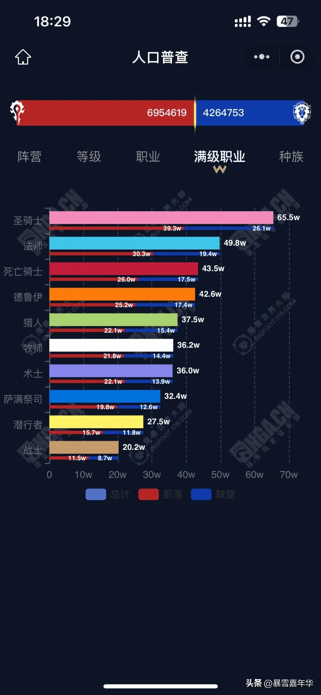 (总人口满级职业分布,带阵营)