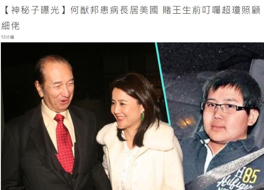 当然了,赌王并不是不疼这个孩子。据说是何猷邦很怕人多的地方,也不擅长与人沟通,在听取了专家的意见后,也为了避免遭遇传媒的骚扰,才让他生活在国外。