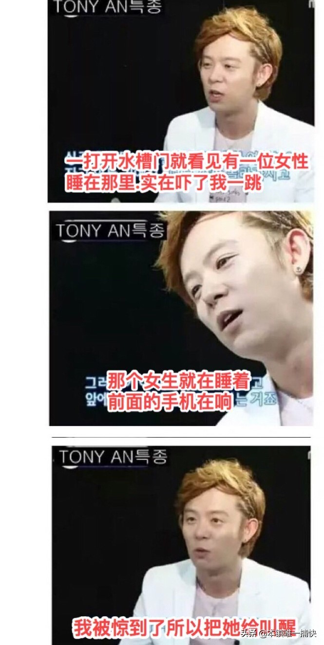 原来经历恐怖片情节的不止金在中,韩国男艺人tony安,有一天工作很晚回到家中,正在其准备休息时,突然听到了手机铃声,确认不是自己的手机响后,他发现铃声是从厨房传过来的,他来到厨房竟发现声音竟是从厨房的水槽里发出的,一身冷汗的tony安小心翼翼打开水槽门,吓得一屁股坐在地上,原来里面竟躺着一个女人,原来这个女人是个私生饭,她偷偷潜入到偶像家中,躲在水槽里,竟不知不觉睡着了!