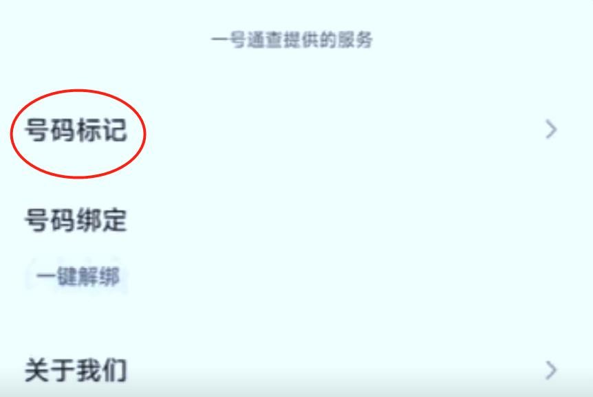 进入到这个页面,我们可以看到在下方这里有号码标记,号码绑定和关于我们这三个选项,我们点击一下这个号码标记。