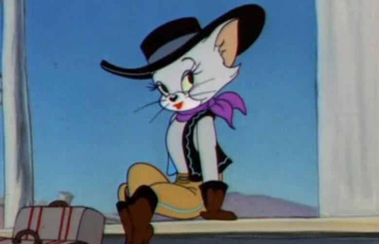 接下来要说的这只母猫呢,在猫和老鼠中只出现过一次,但是人气却高的可怕,甚至可以跟图多盖洛持平,并且很多人都认为她才是猫和老鼠中最好看的母猫,那她是谁呢?就是在非常经典《西部牛仔》中出现的那只女牛仔猫,她的名字叫做莫妮卡!在她第一次出现的时候很多人都以为她是图多盖洛,其实并不是,很多细心的朋友们都会发现,图多盖洛是白色,而塔拉是灰色!并且二者的妆容、外形还有品种都不相同!