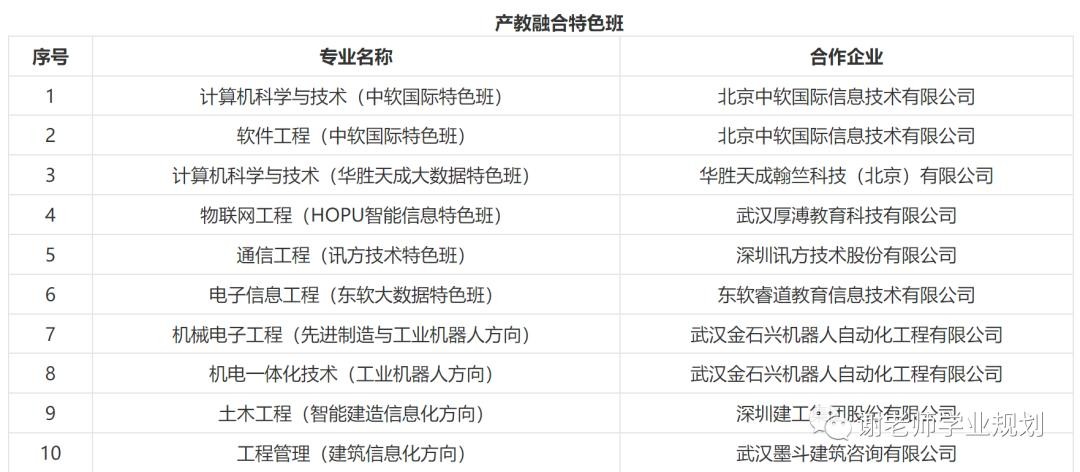 武昌首义学院之所以多年位居民办高校之首,和学校积极探索校企深度合作密不可分。互联网、大数据、人工智能等信息技术的快速发展,给学校教育带来了难得的机遇和严峻挑战。2015年初,信息科学与工程学院开始试点与企业合作,围绕新兴产业进行共建专业。次年与中软国际合作共建计算机科学与技术(中软国际特色班)等专业,并申报获批国家教育部门“专业综合改革试点”项目。这一尝试,拉开了武昌首义学院校企共建专业的序幕。2016年至2017年,以中软国际合作模式为样板,信科学院又分别与深圳讯方等5家企业共建专业特色班。机电学院与北京华晟经世信息技术股份有限公司共建自动化专业(智能制造方向),获批国家教育部门“智能制造2025计划”项目。近年来,武昌首义学院通过深入贯彻落实产教融合相关文件精神,主动对接地方产业行业,围绕应用型人才培养要求,与230余家企业开展了多形式全方位的校企合作联合育人项目。