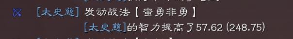这时候就有人要喷村夫了“菜逼,那兵无和当峰的伤害哪里来?“且慢,看下太史慈的兵书,蛮勇非勇会增加太史慈16%武力值的智力。这样算下来,全武力加点的太史慈在准备阶段吃到兵书、阵营、兵种加成之后,智力很容易就破200.