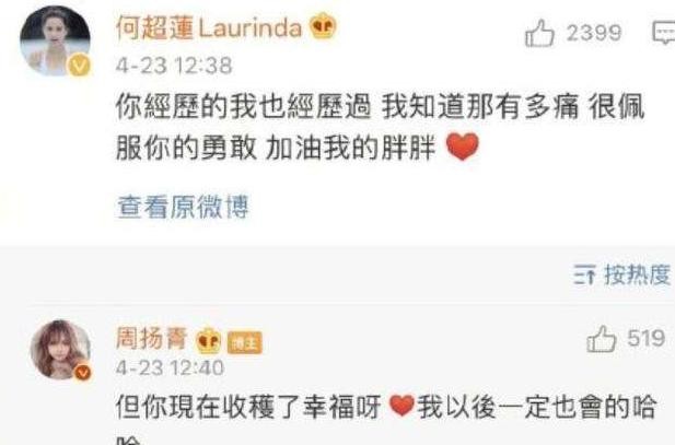 赌王的小女儿何超莲也是她的密友之一。23日还在评论下方表示支持周扬青。郑爽也曾评论回复心疼周扬青。可以说周扬青的交际圈非常强大。