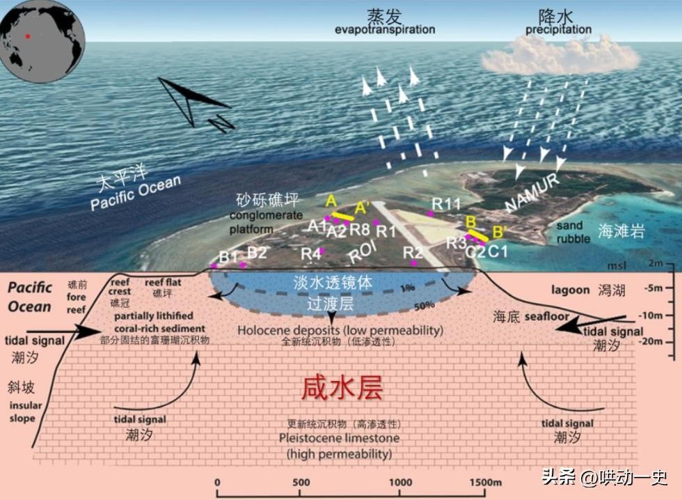 地下淡水透镜体,这是一种特殊的地质构造,多数形成于珊瑚礁海岛。它是由于海水经过天然的过滤和分离,形成了一个内嵌于永暑岛的淡水区域。