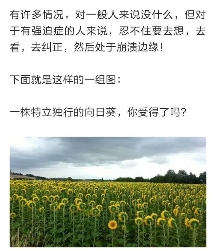 有许多情况,对一般人来说没什么,但对于有强迫症的人来说,忍不住要去想,去看,去纠正,然后处于崩溃边缘