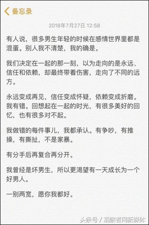 中午时分,许凯也正式发文回应“家暴”传闻,他表示:我做错的每件事儿,我都承认。有争吵,有推搡,有撕扯,不是家暴。”他更直言自己曾经是坏男生,所以更渴望有一天成长为一个好男人。