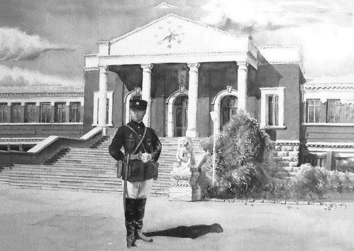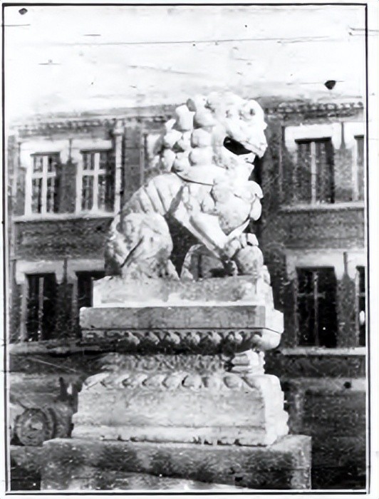 一只汉白玉狮子的老照片。当年由张学良出资,从北平运回一对汉白玉狮子,放在校园的中庸楼前。解放后搬到和平区新华广场一日本式小楼前摆放过,这是冯庸大学唯一的遗物。