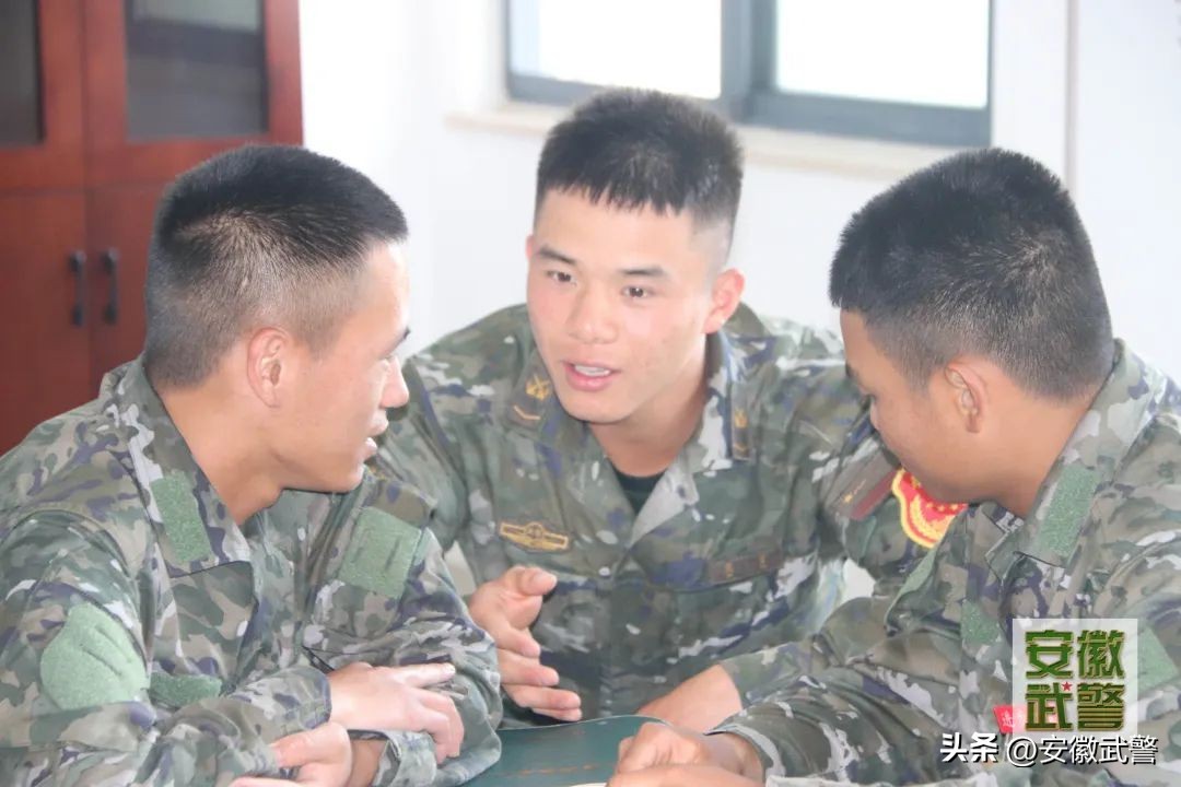 新兵杨帅在跟班长、干部谈心时