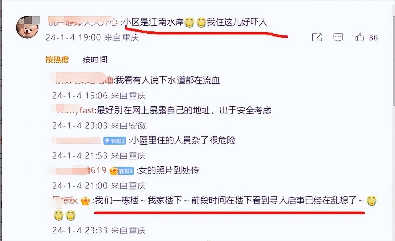 江南水岸小区位于重庆南岸区,是一个公租房小区。多名居民在案发后透露了一些引人注目的细节。其中,有人在小区的业主群中发布了照片,显示楼下住户的水管渗出了红色液体,疑似是血。这引起了公众对于案发现场的好奇与关注。