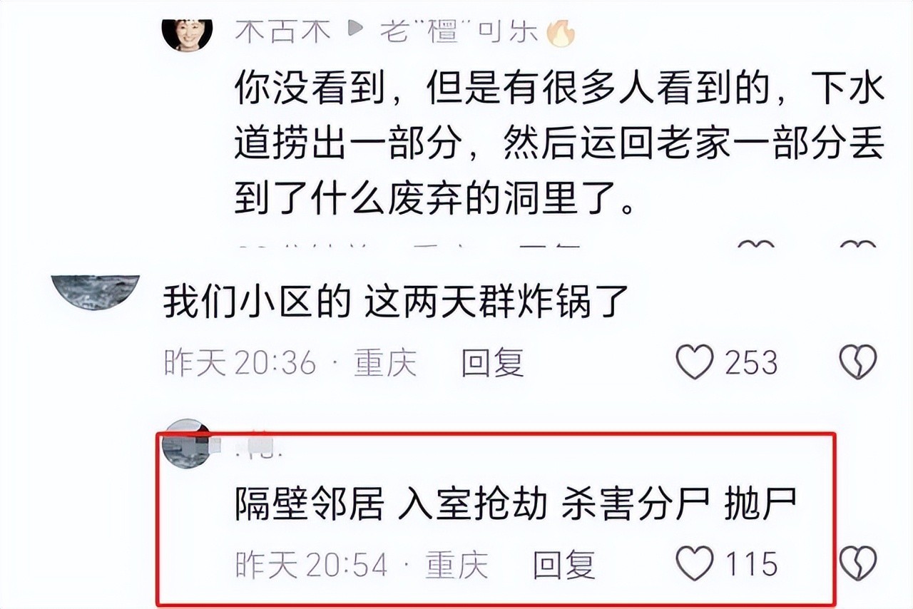 更为令人震惊的是,有多名网友声称凶手的手段极其残忍,包括入室抢劫、杀人、分尸、抛尸等恶行。这种恐怖的情节令人不寒而栗,也让人们开始反思小区安全的问题。
