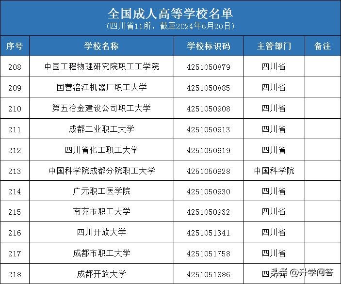 四川省内成人高等学校名单