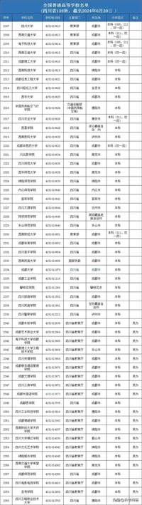 四川本科大学名单汇总表
