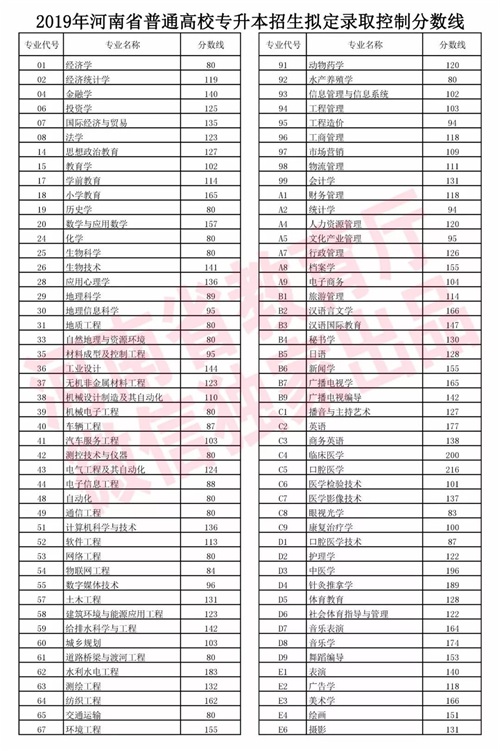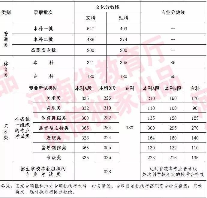 2019河南高招录取控制分数线