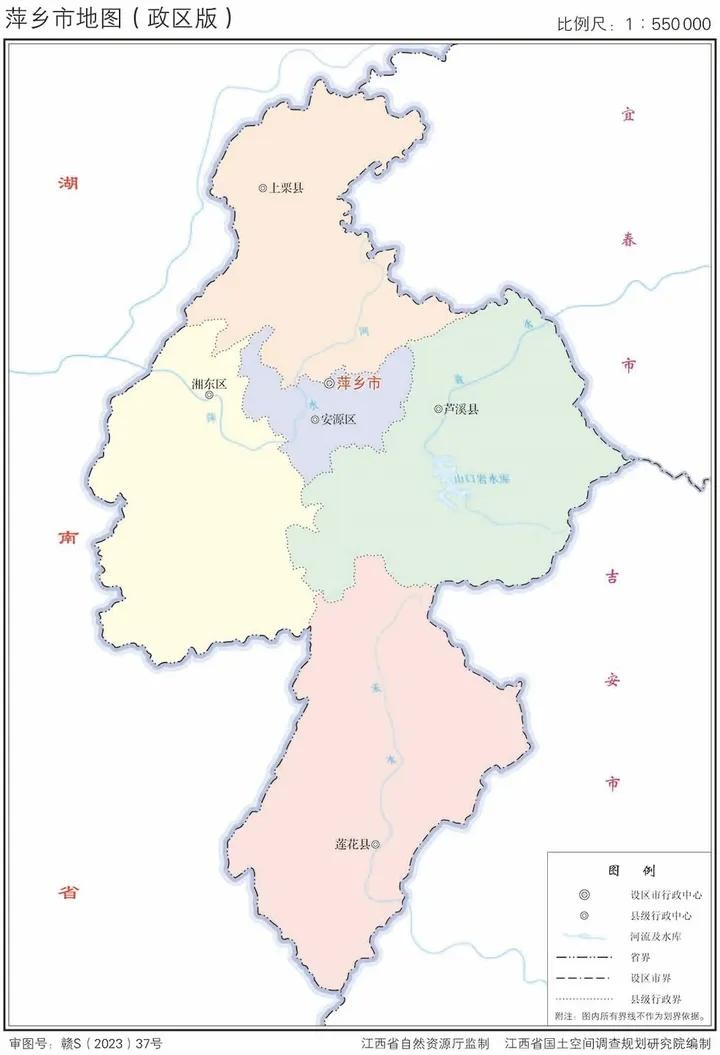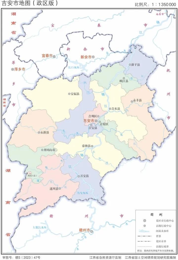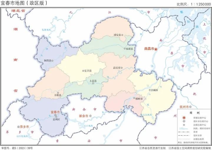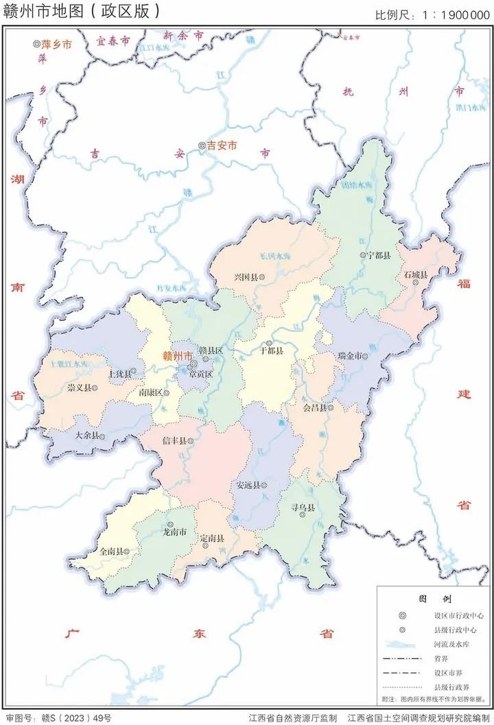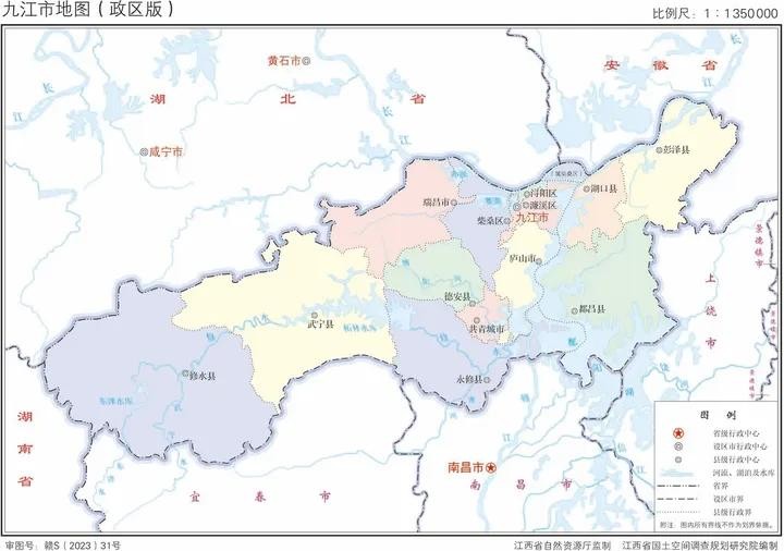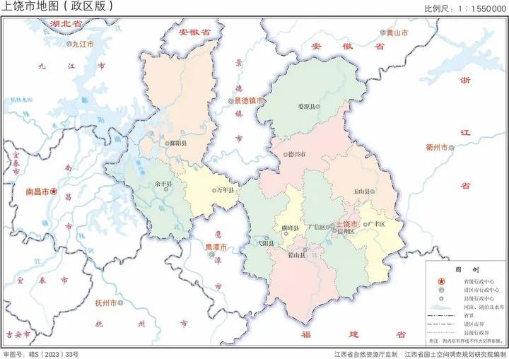江西省2023年版行政区划图(含11大地级市高清地图)