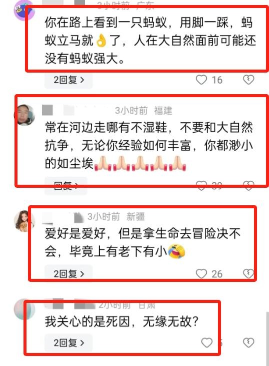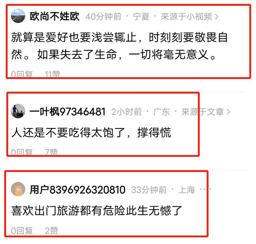 网友们说:就算是喜欢的事情,也别太沉迷,得时刻对大自然保持敬畏之心。要是连命都没了,啥都没意义了。对啊!死就是结束啊!人都不在了,啥梦想都是白搭!这种死法让人憋屈,太不值了!