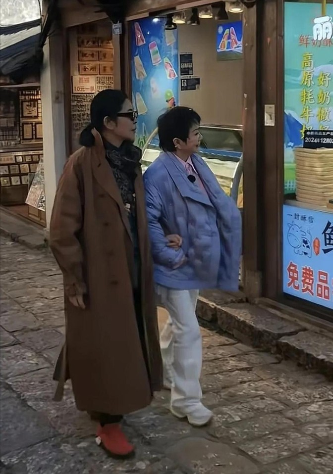 63岁蔡明逛丽江古城步履蹒跚,倪萍一旁搀扶,网友:自然老去最美