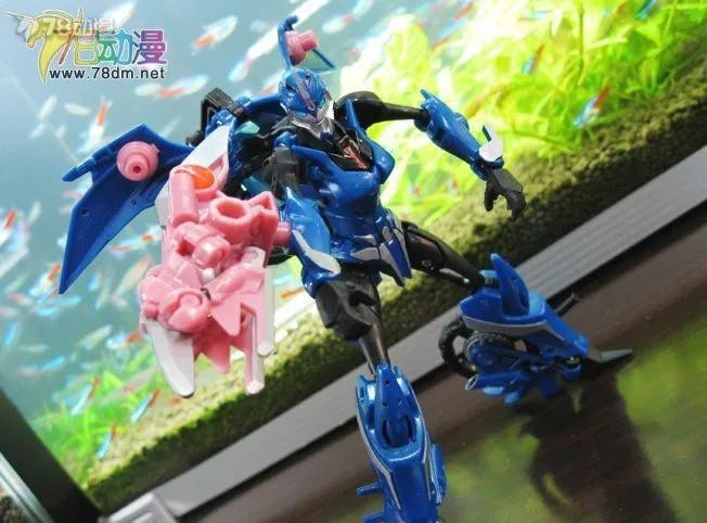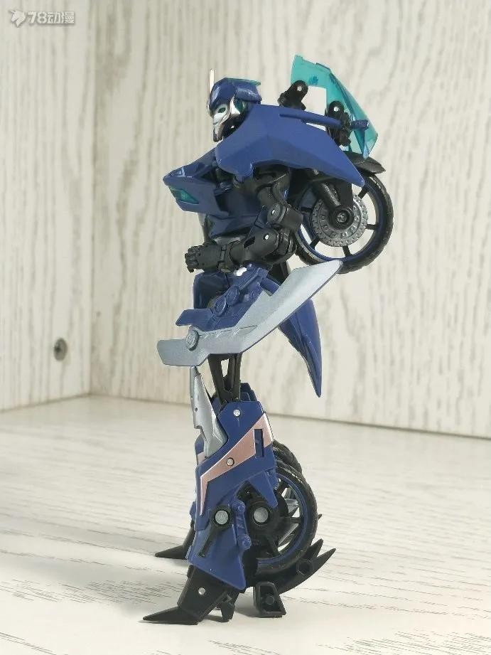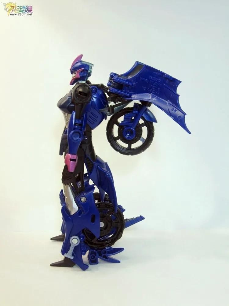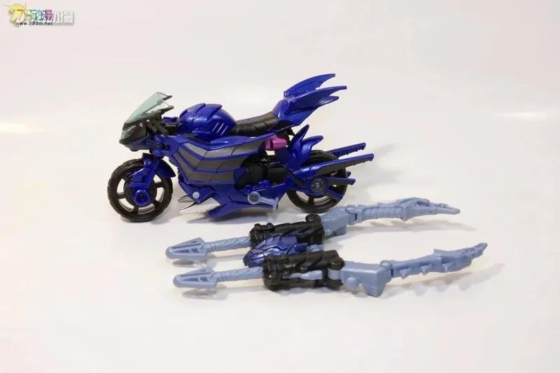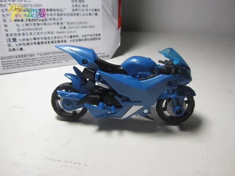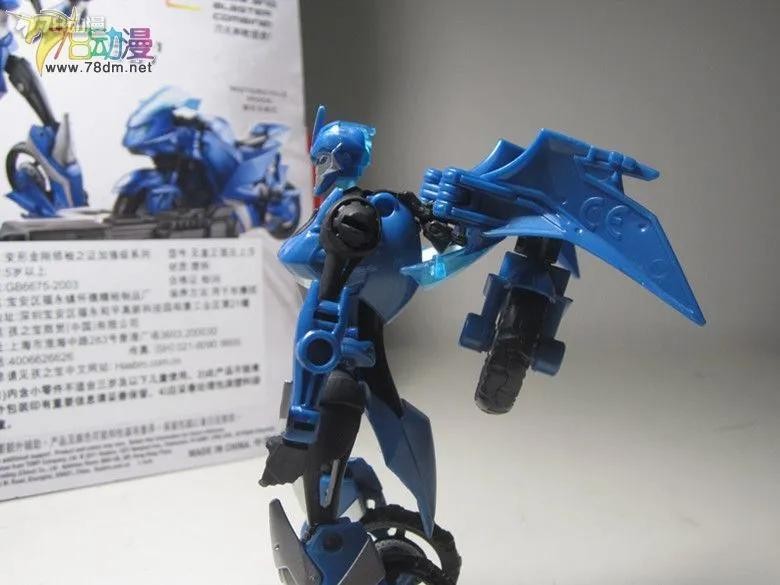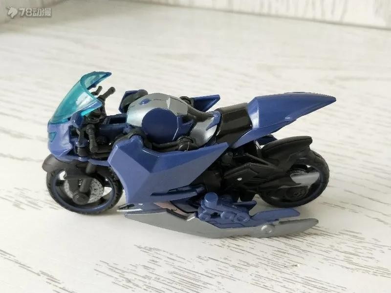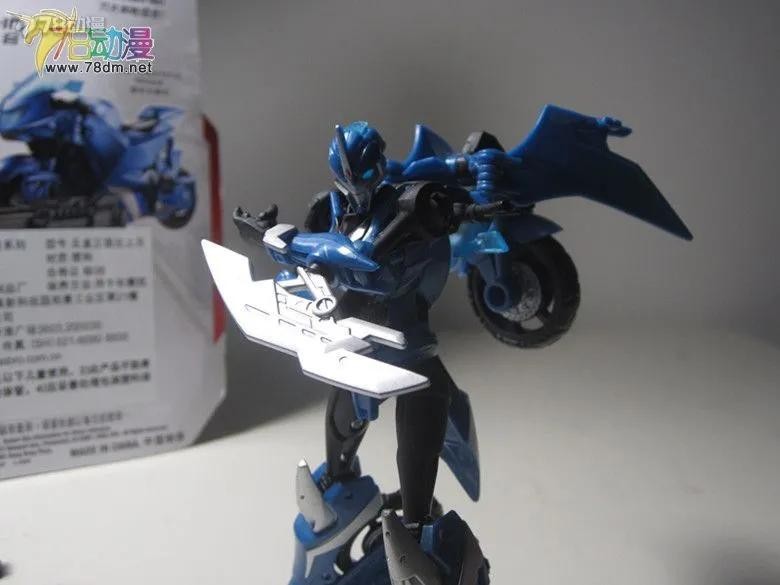 而二版阿尔茜玩具形体略小于初版玩具,还原了背后小翼,但是略大,摩托车形态做的也还不错。