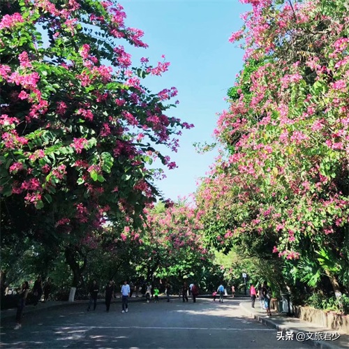如果环绕湖畔,我们可以先后到达桃林、蝴蝶谷,不过这次君少和驴友们选择的是从瀑布处入手,此时路上也很多穿旗袍的阿姨们在表演民族舞,不时还可以看到“马路歌手”在卖唱,围观者络绎不绝。