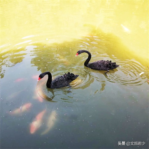 天池里养了两只黑天鹅,也不怕生,游客都会情不自禁的掏出手机拍照。不过也有部分游客在扔苹果喂养,君少觉得此举还是不雅,也会破坏环境卫生,如果要喂养还是向饲养人购买些鸟食好些。