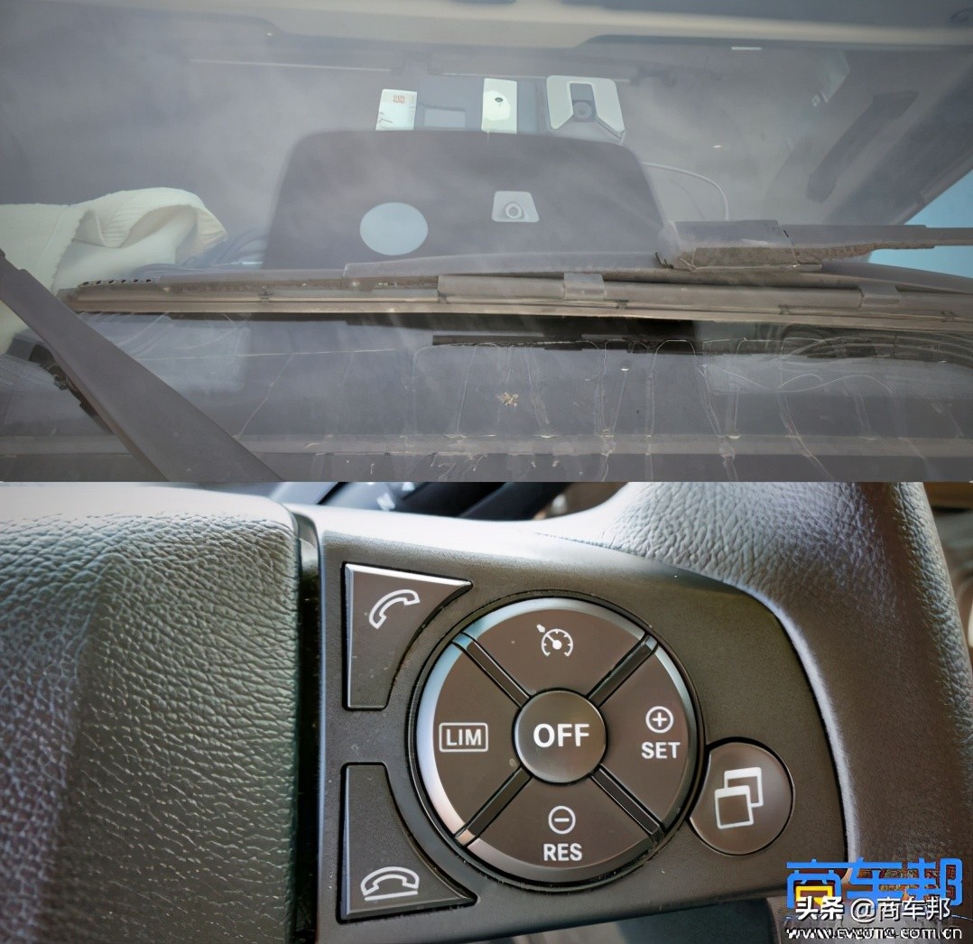 奔驰卡车独具特色的“LIM”按钮设置在多功能方向盘的右侧,开启后可限定车辆时速。这一功能也得到了驾驶员的广泛好评:“如果我把车速设置在70km/h,速度达到后,不管怎么踩油门(注:油门踩到底,触发强制降档开关可以继续加速),车子都不会继续加速,编队行驶时轻松了不少。”