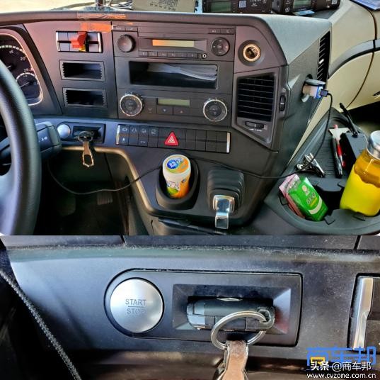 根据《汽车运输危险货物规则》JT617的规定:“危险品运输车应有切断总电源和隔离电火花装置,切断总电源装置应安装在驾驶室内”。通过上图可以看出,奔驰在仪表台的两个小储物槽的上方设置了预留按键,并将电源总开关布置于此。
