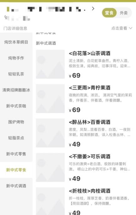 记者通过这家门店的小程序上看到了酒单。在调制酒中,陈皮、肉桂、橘皮、梅花等中式元素加入了酒品,此外,可乐、青柠等比较典型的品类也在菜单中出现。一杯酒定价约69元,价格普遍高于门店提供的茶饮(门店一杯茶饮约25元)。一壶热红酒可供2至3人饮用,一壶定价128元。