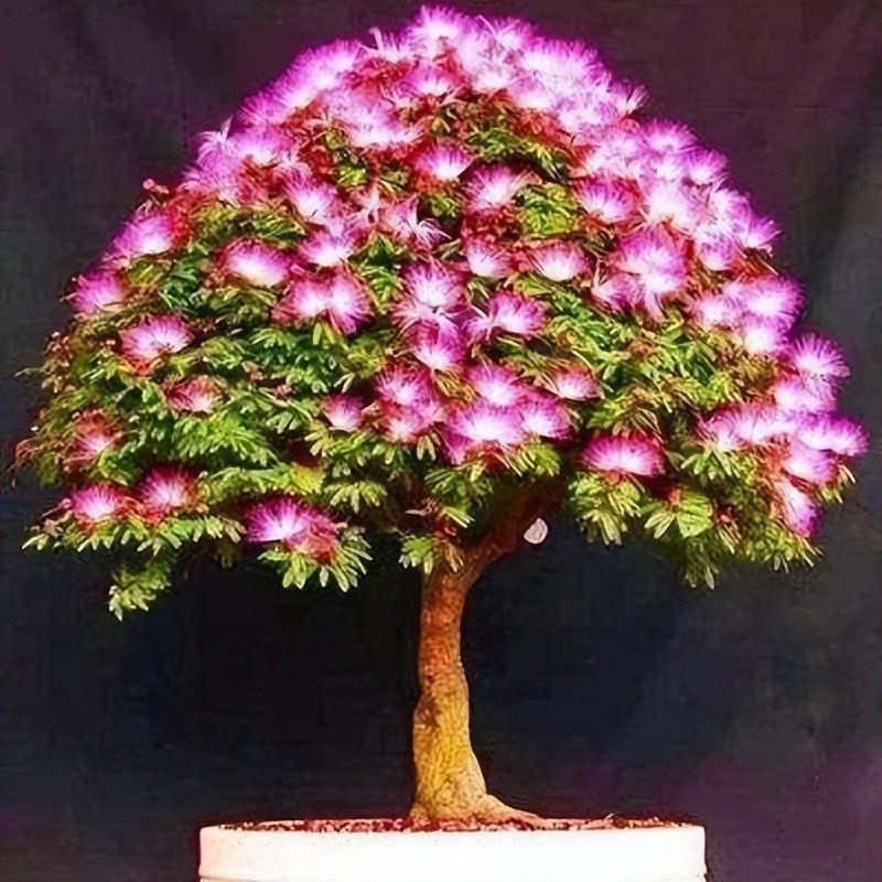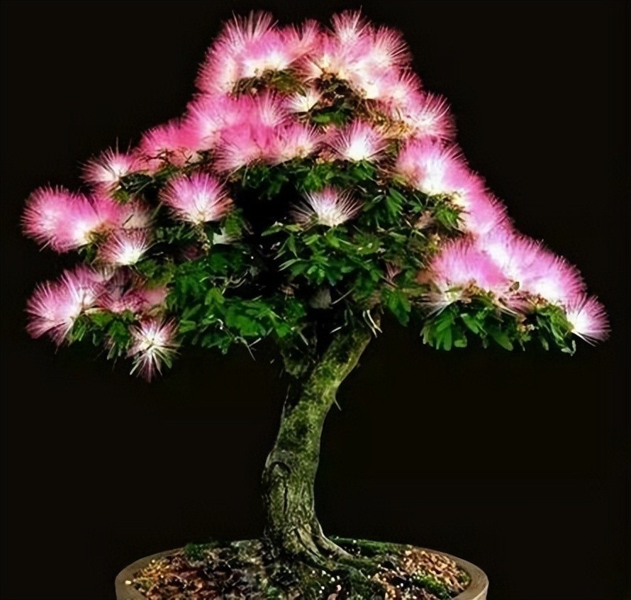 很多人觉得合欢树这么大的乔木,只能在公园里看看,肯定没法养在家里。其实这种想法是不对的,因为很多人家都有合欢树盆栽,经过修剪打造为不错的盆景,观赏价值更高,而且在家就能观赏到合欢花,真的太方便了。