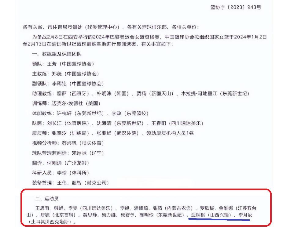 中国女篮15人大名单出炉!李月汝李梦领衔,目标2024奥运会门票