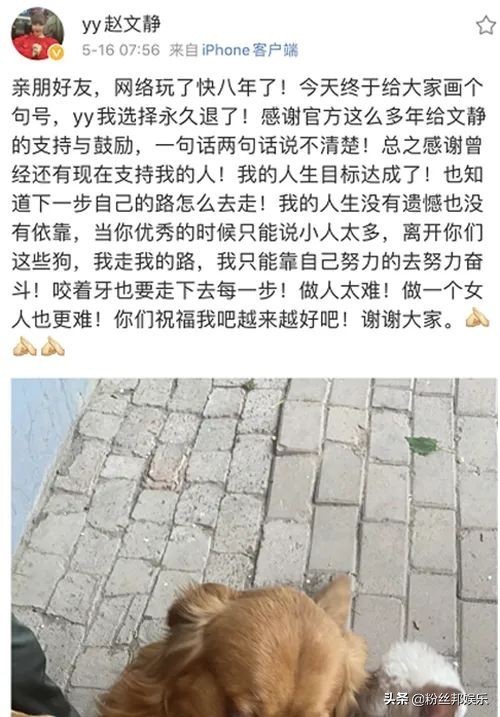 5月16日,文静突然发布微博宣布,对于YY直播她要选择永久退了。