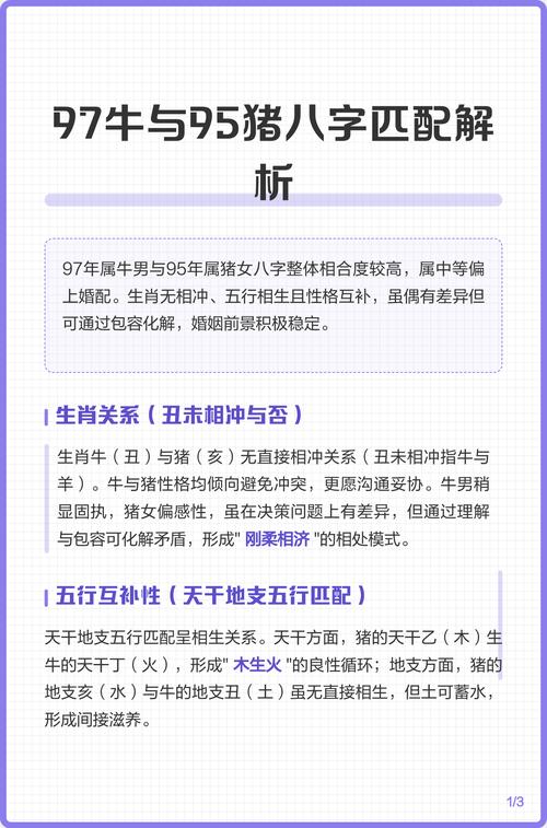通过八字命理来判断女性的最佳婚配男性是一个复杂而细致的过程,它需要综合考虑多个方面的因素,包括五行互补、十神关系以及大运流年的影响等,对于1995年出生的属猪人来说,虽然在某些月份可能会面临一些挑战或困难,但这并不意味着他们的整体命运不佳,相反,通过了解自己的命运特点并采取相应的措施来应对挑战,他们仍然可以拥有幸福美满的人生。